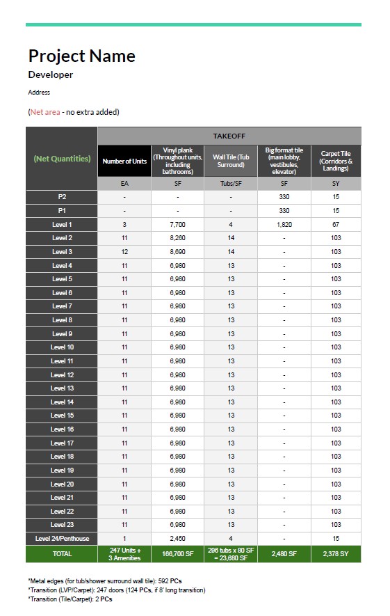 Professional Flooring Takeoffs